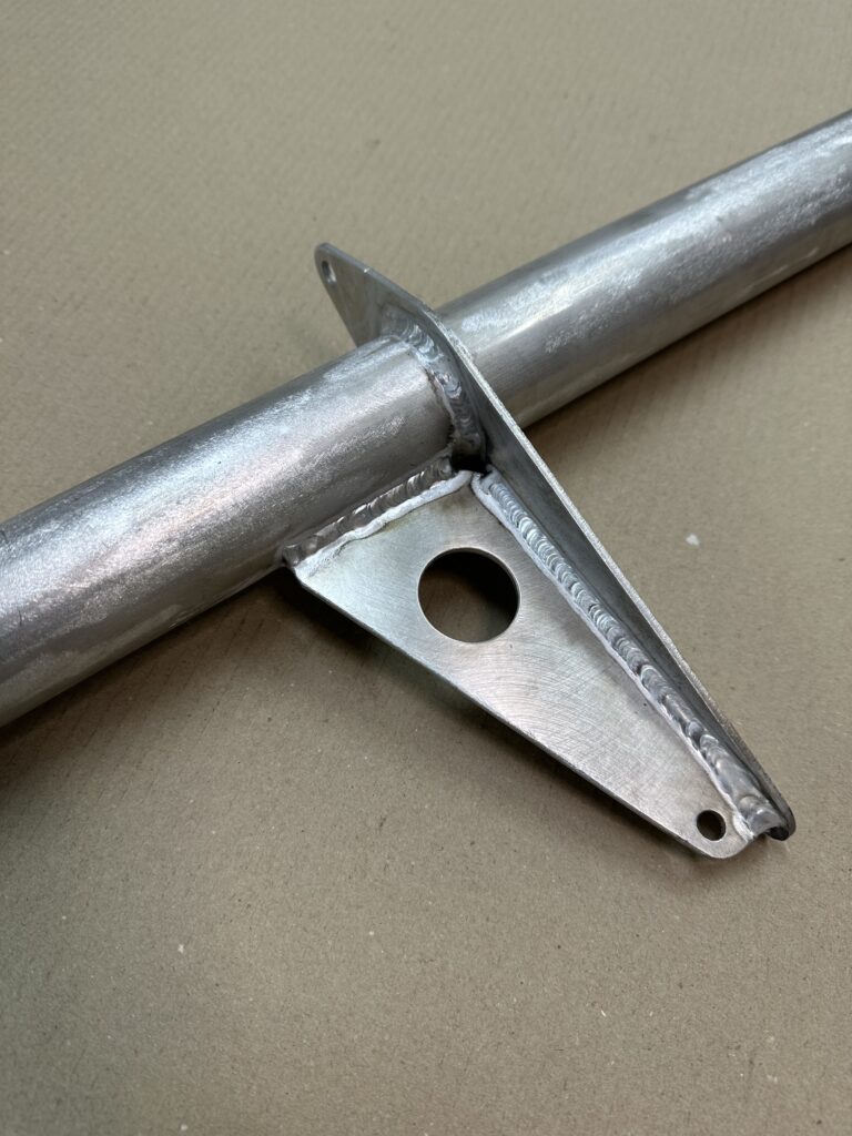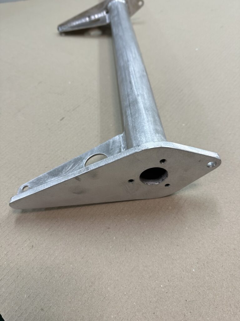 溶接板金加工.comで加工をおこなった特殊車両のポールパーツです。購入品である丸パイプにアルミプレート(t3mm , t8mm)を溶接しています。t8mmの板にタップ加工後、ヘリサート加工を施しています。