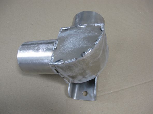本製品はアルミ製のエアーダクト部品です。いわゆるアルミの製缶板金加工品です。
