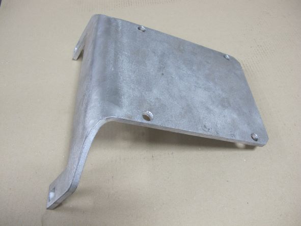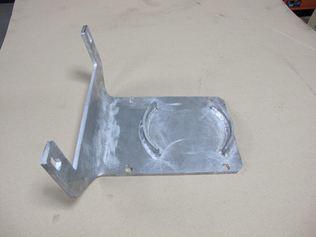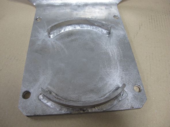 加工におけるポイントとしては、曲げRが大きい点とアルミ材への溶接であることから溶接歪み・縮みが大きくなる点が課題となり、この点を考慮して取り代の確保と、溶接手順に工夫を凝らしました。さらに、プレートの先端部に異形の穴加工が施されていますが、この2つの穴のピッチには±0.3mm以内があり、アルミの板金加工品としては高い精度要求がありました。一般的には、最終工程で機械加工を行うところですが、当社では板取りの段階で異形穴の加工を行い、完品溶接により精度の確保を行いました。結果、仕上げ工程で機械加工を行う場合と比較してコストダウンに成功しています。最後に客先での塗装処理のために、塗装膜が乗りやすいように表面にバフ加工を行っています。
