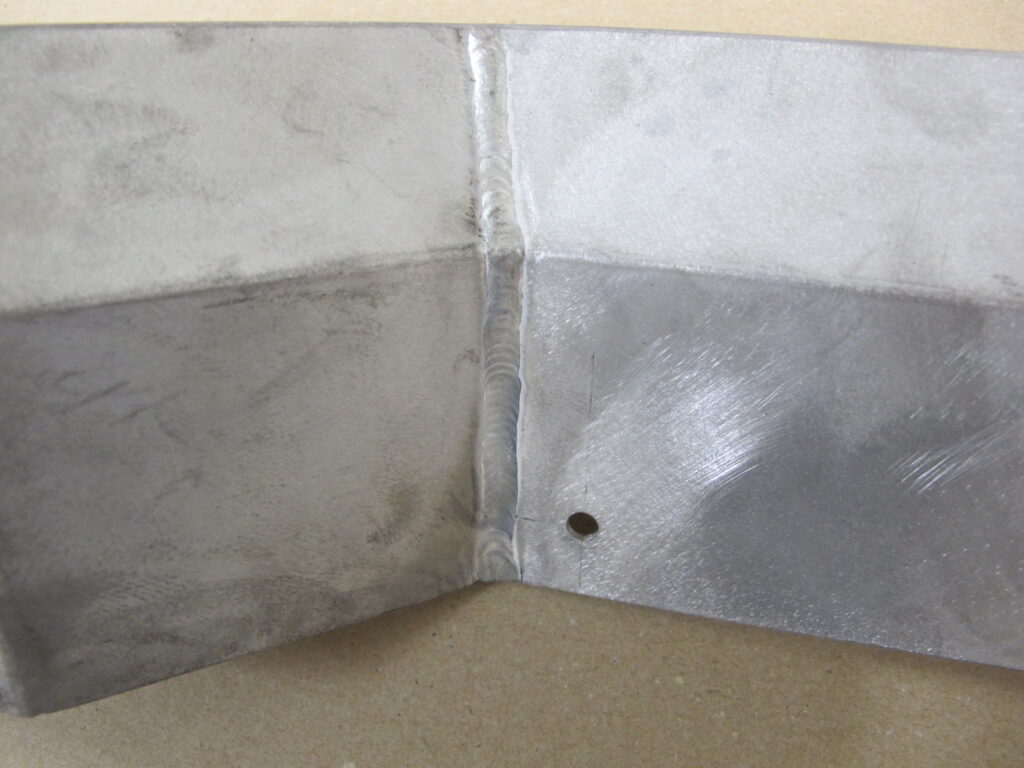 当社では、アルミの2mm厚の板金加工の実績を多数持ち、溶接後の引っ張りも考慮して、3つの部品の斜めカット部にすき間がないよう、突き合わせ溶接をすることも可能です。